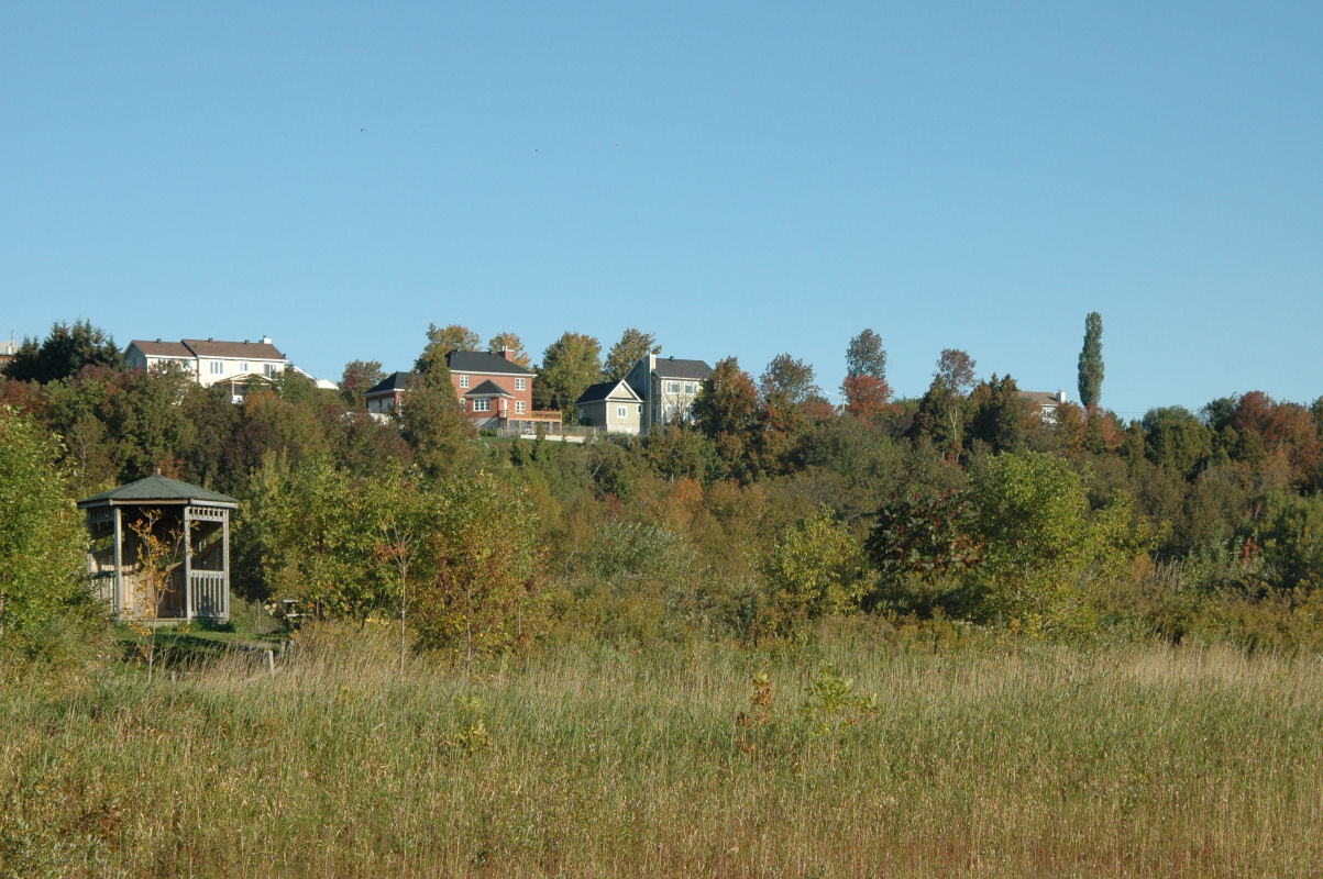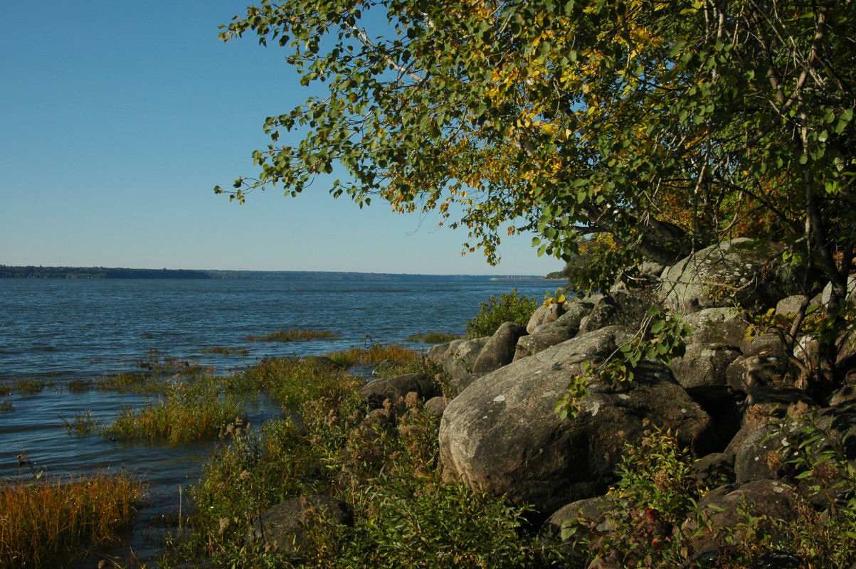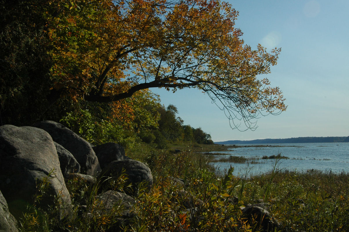 The park borders the Saint Lawrence river and includes several trails as well as a lake.