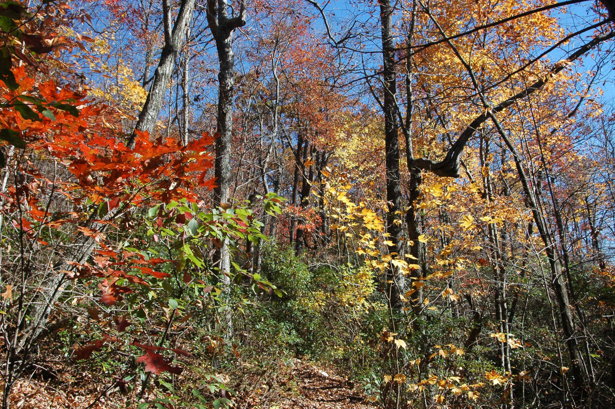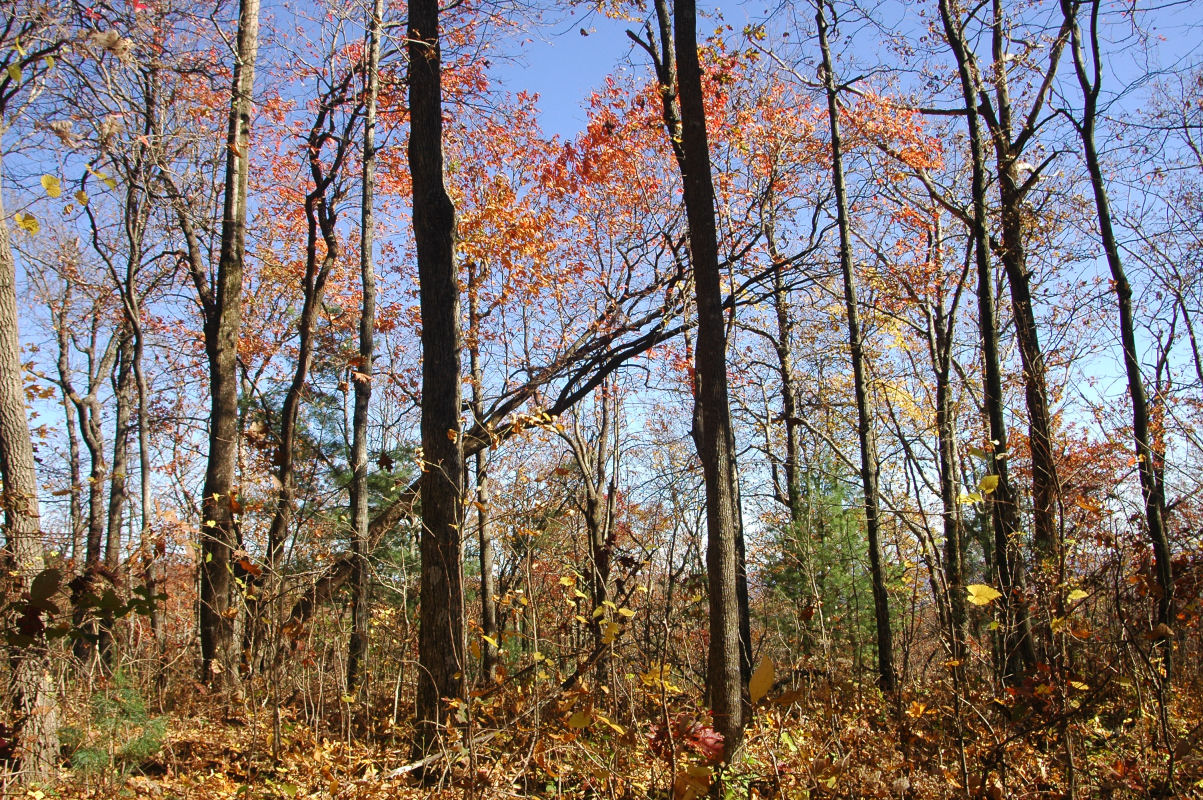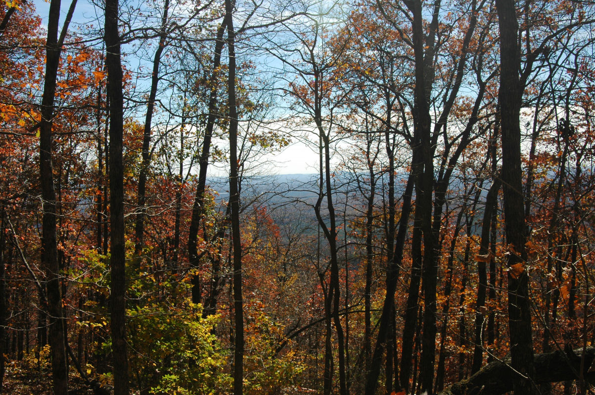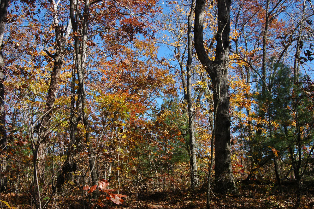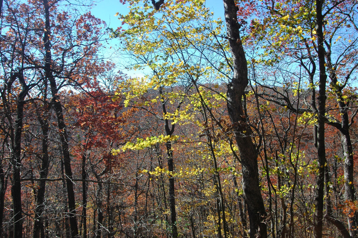 Fall colors and lots of trees.