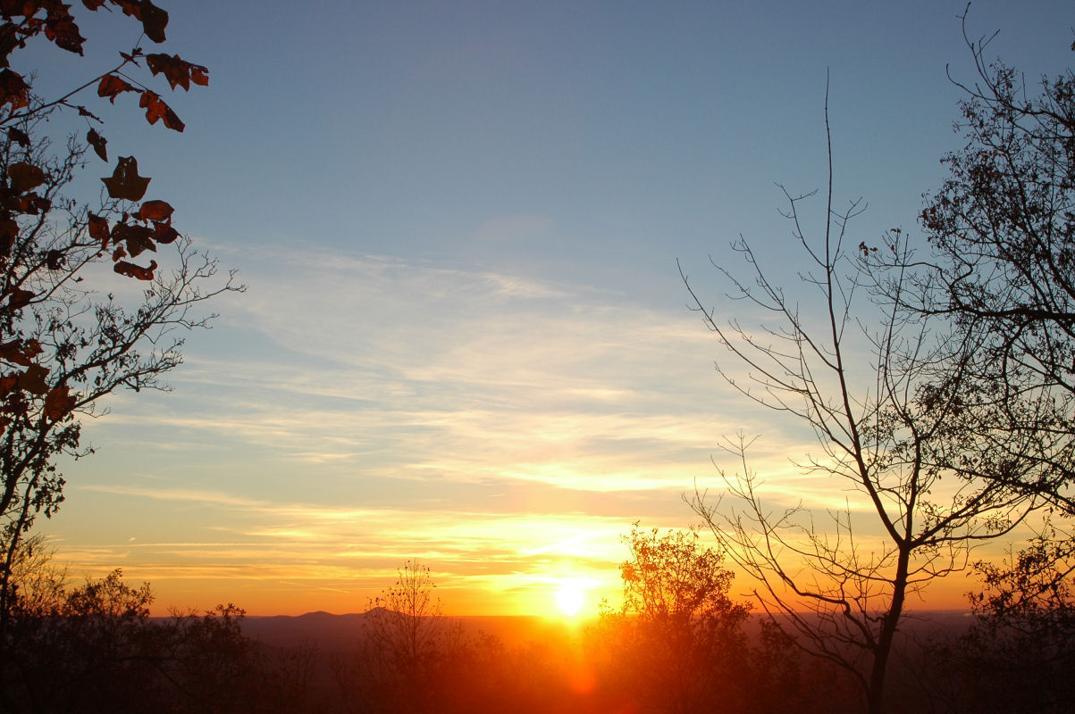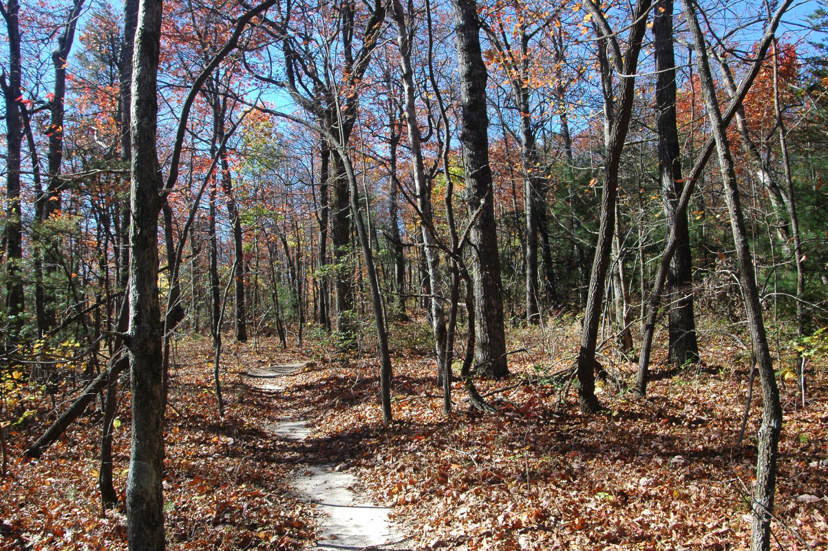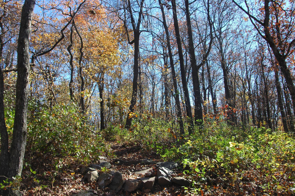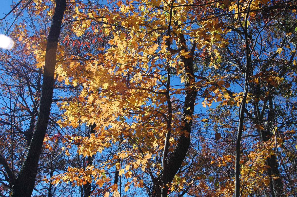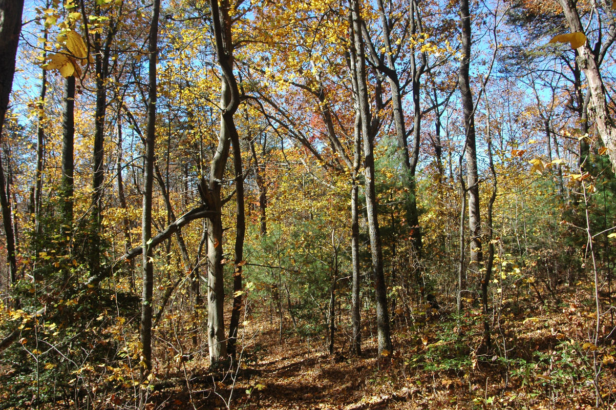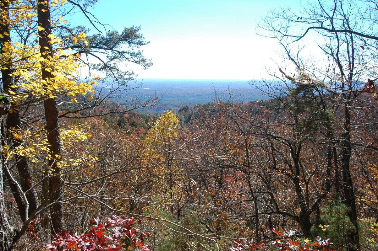 Fall colors and lots of trees.