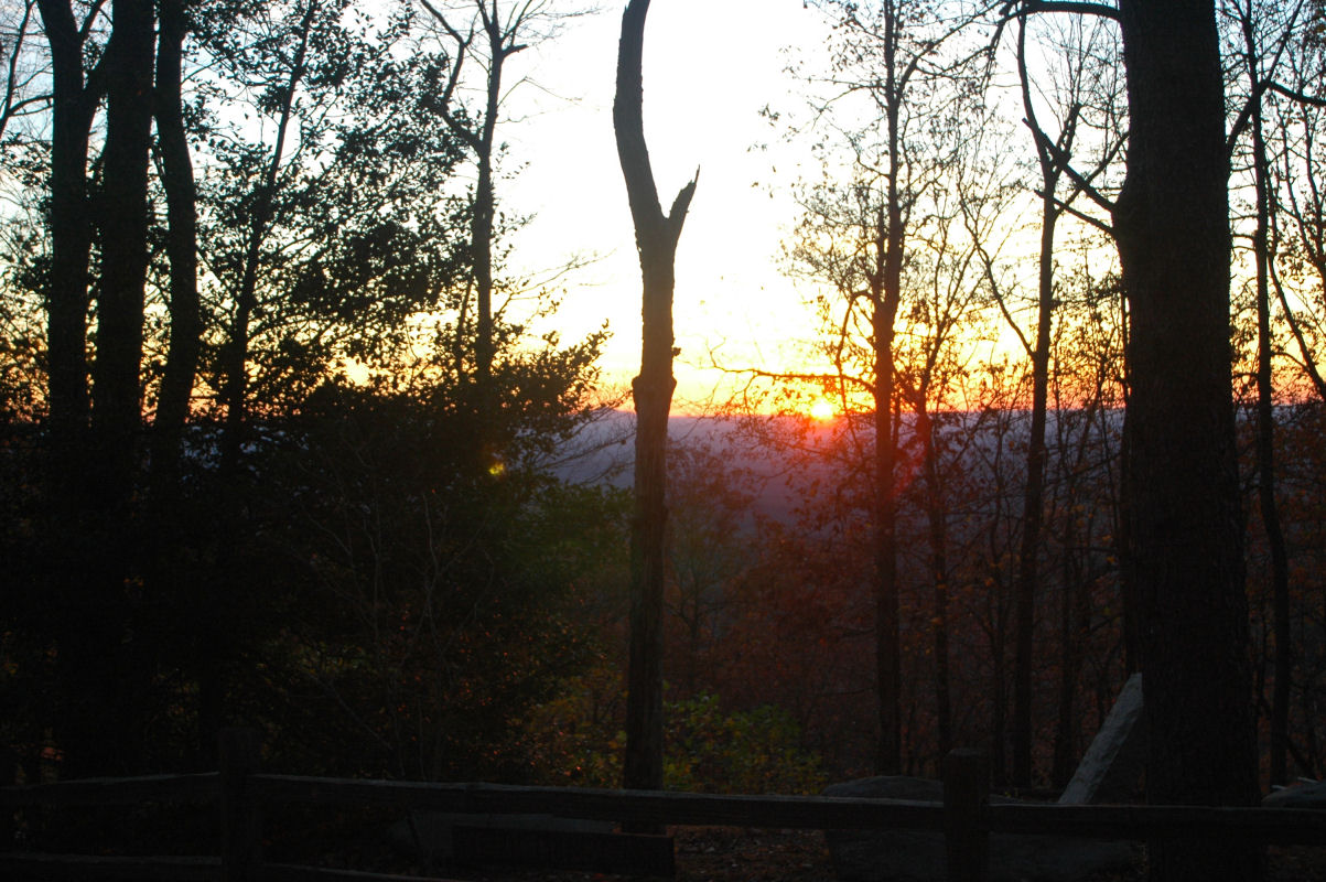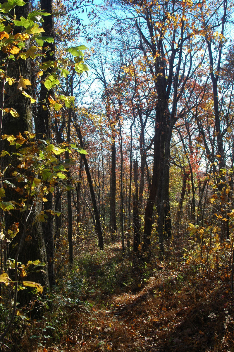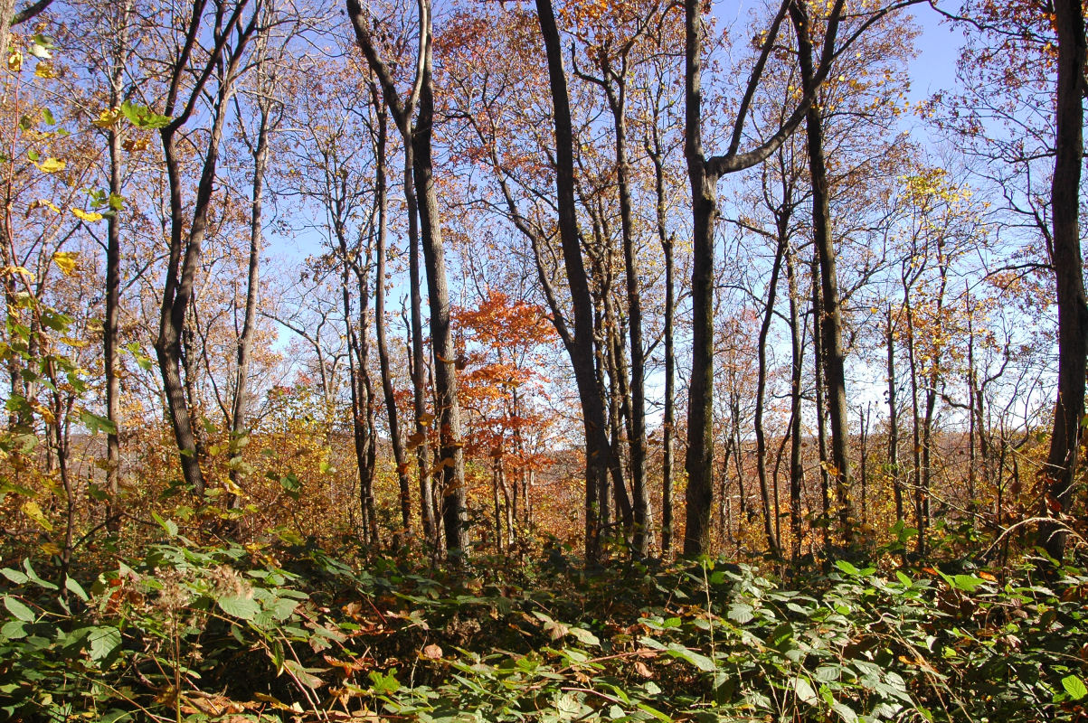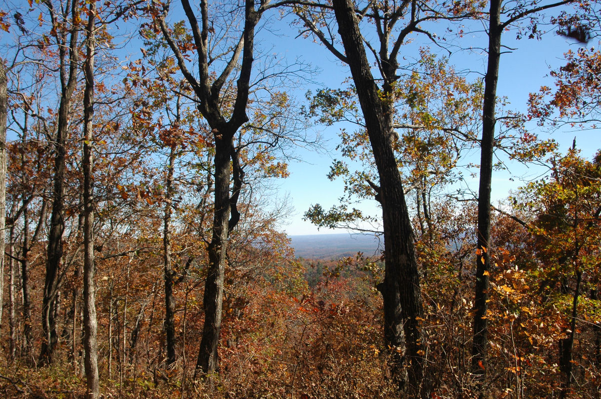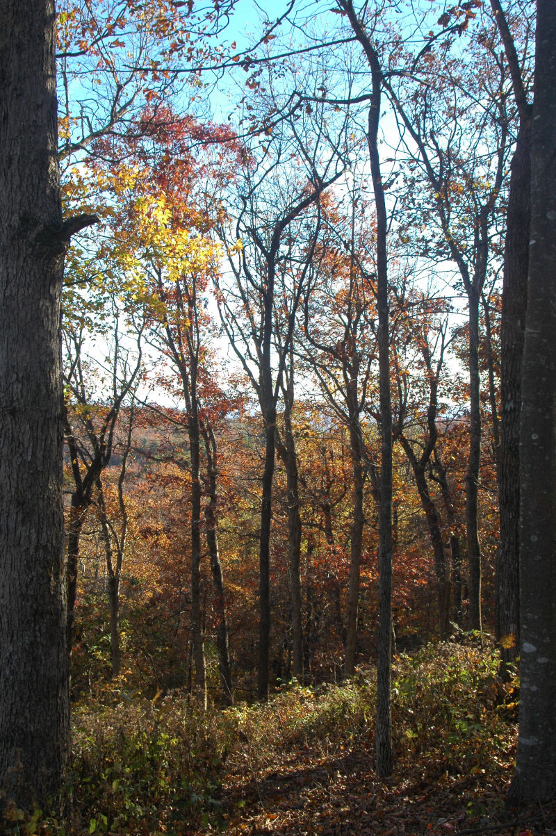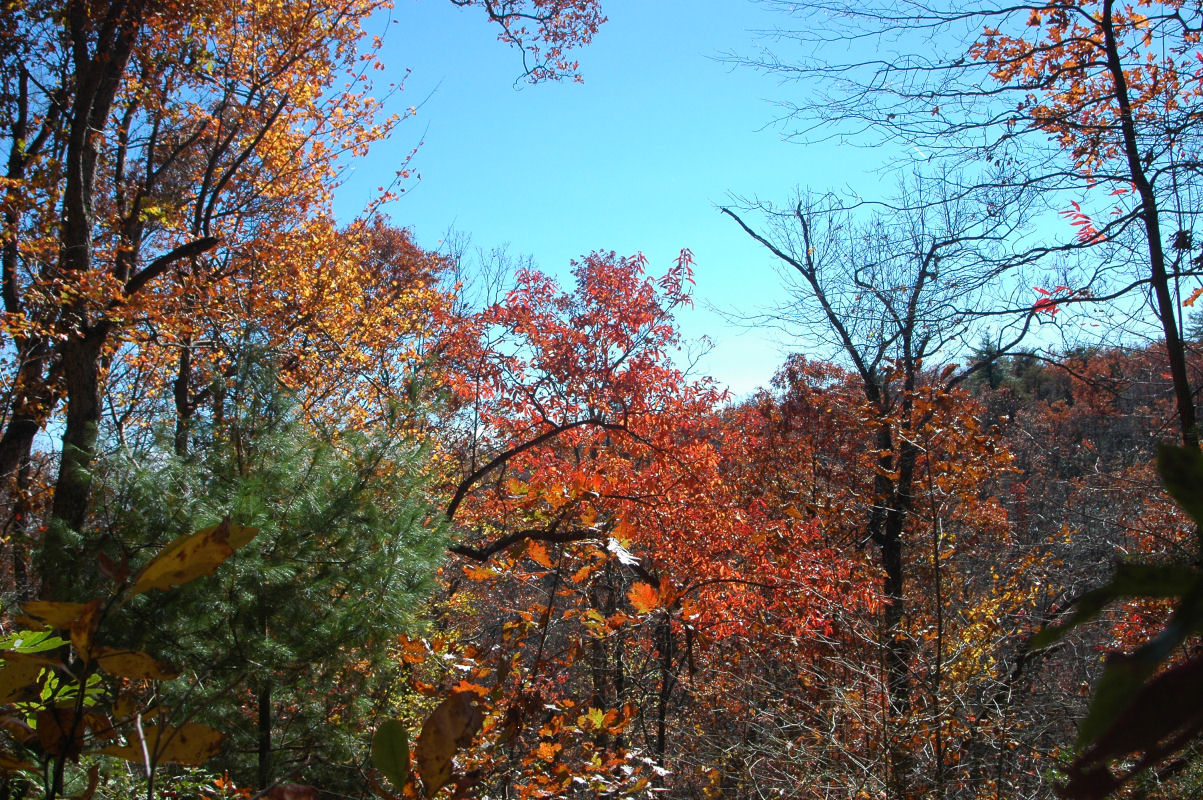 Fall colors and lots of trees.